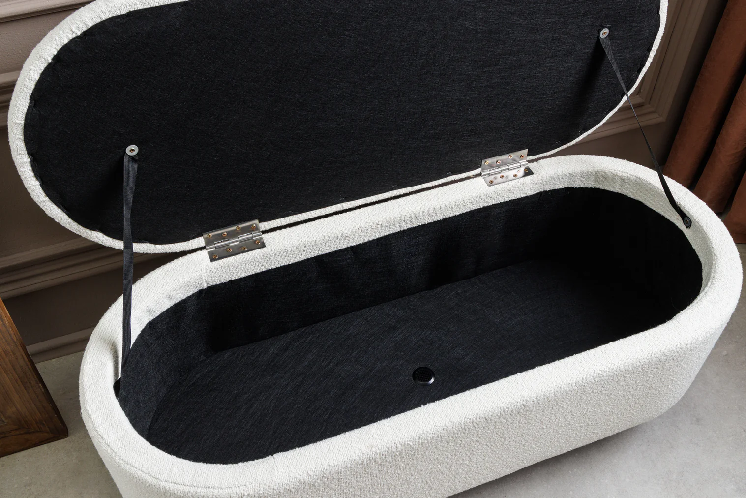Lavica VOQUE 110 cm White Boucle je ideálnou voľbou pre zákazníkov, ktorí hľadajú dizajnový nábytok s jemným, moderným charakterom. Spája v sebe trendový materiál, komfortné sedenie a praktický úložný priestor, vďaka čomu je nielen krásna, ale aj maximálne funkčná.