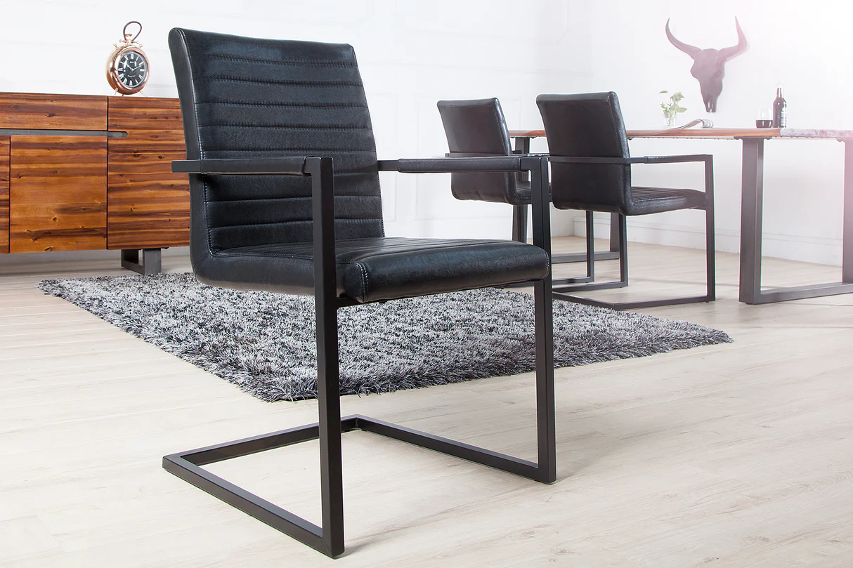 Táto elegantná stolička LOFT v čiernom prevedení zo syntetickej kože v čiernom prevedení s podrúčkami kombinuje moderný dizajn a komfort v jednom kuse nábytku. Rám bez zadných nôh dodáva stoličke vzdušnosť a optickú ľahkosť, zatiaľ čo podrúčky zvyšujú pohodlie pri sedení. Čierne prevedenie pôsobí elegantne, sofistikovane a hodí sa prakticky ku každému interiérovému štýlu – od minimalistického cez industriálny až po moderný kancelársky priestor.