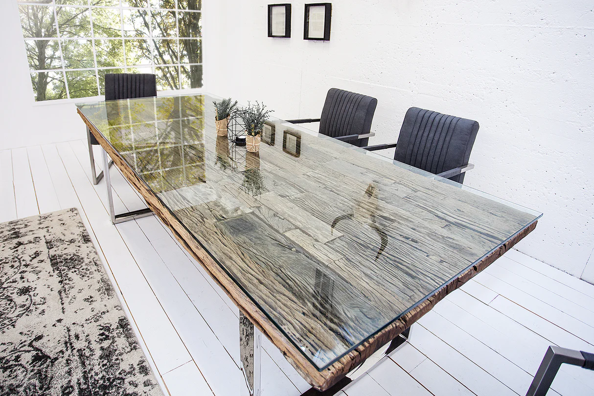 Euphoria Barracuda – jedálenský stôl 180 cm z masívneho recyklovaného teakového dreva, aj so sklom