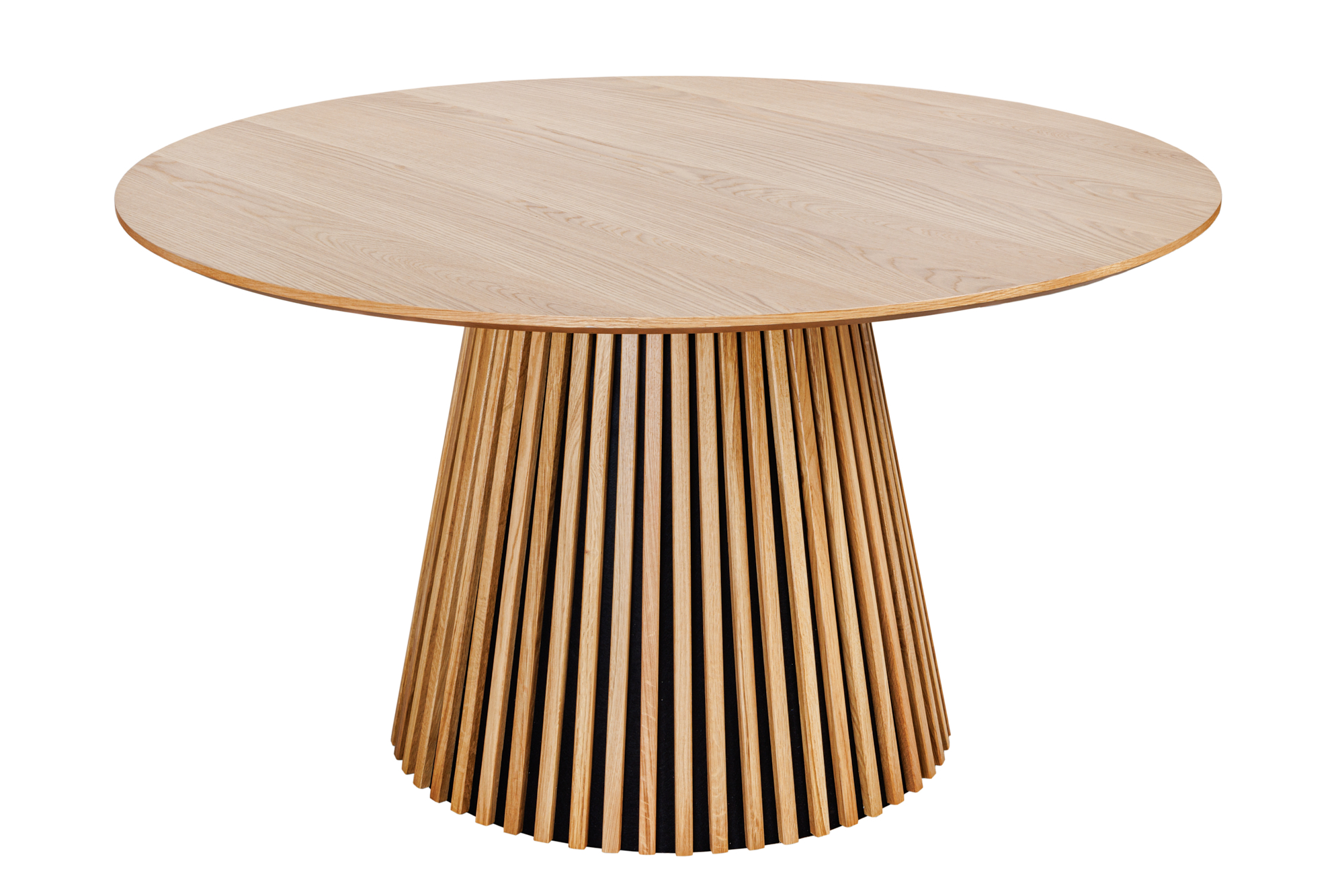 Tento elegantný kruhový jedálenský stôl spojuje štýl a praktickosť do dokonalého celku. S priemerom 120 cm poskytuje dostatok miesta pre pohodlné stolovanie až pre šesť osôb. Jeho robustná konštrukcia z kvalitného dubu pridáva interiéru teplý a prírodný nádych. Je ideálny pre rodinné večere, spoločenské udalosti alebo ako štýlový doplnok do vašej jedálne alebo kuchyne. Tento stôl sa dokonale hodí do súčasného moderného štýlu Japandi, ale aj do ďalších štýlov, čím zabezpečuje vynikajúcu flexibilitu pri aranžovaní vášho domova.
