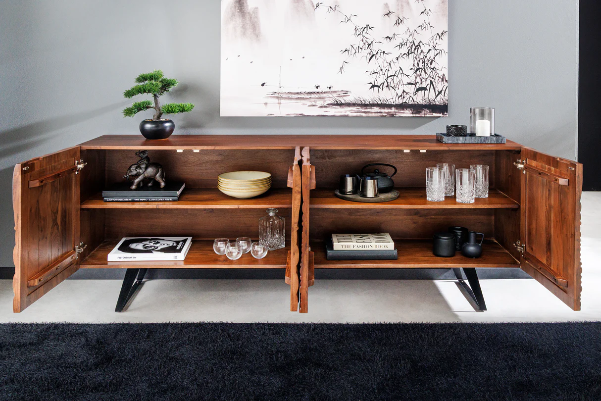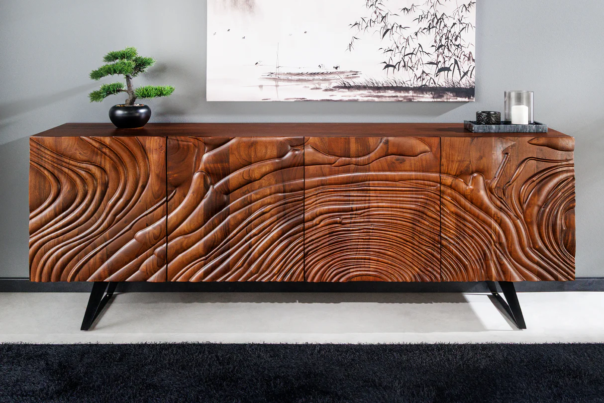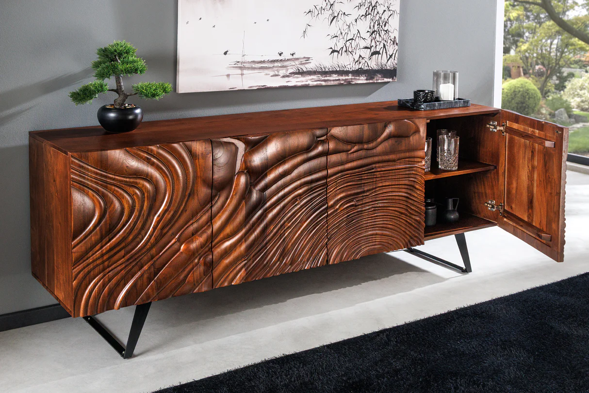 Komoda FLUID je elegantným spojením prírodného akáciového dreva s moderným dizajnom.