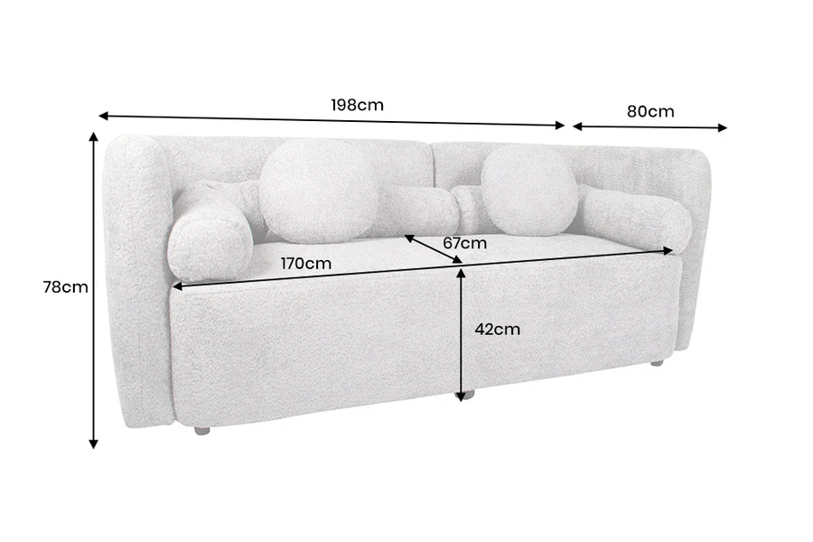 Dekoratívny doplnok + pohodlie – vrátane vankúšov, mäkký materiál (bouclé) a starostlivé spracovanie robia z pohovky príjemné miesto na relax.