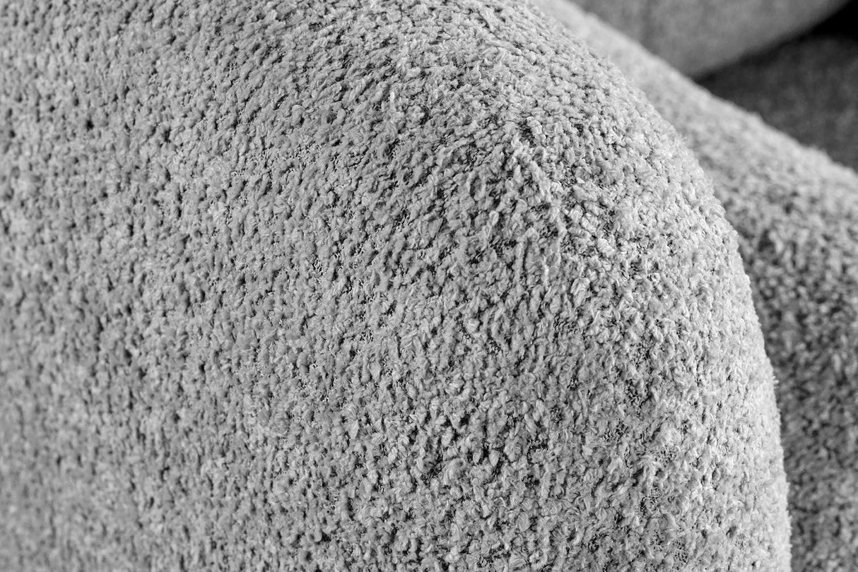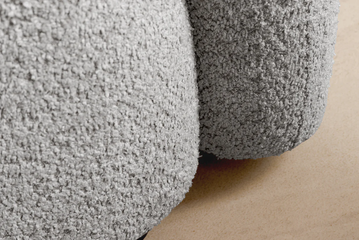 Elevovaný vizuál s neutrálnym tónom – šedá bouclé pôsobí príjemne, moderne a ľahko sa kombinuje s ďalšími farebnými prvkami.