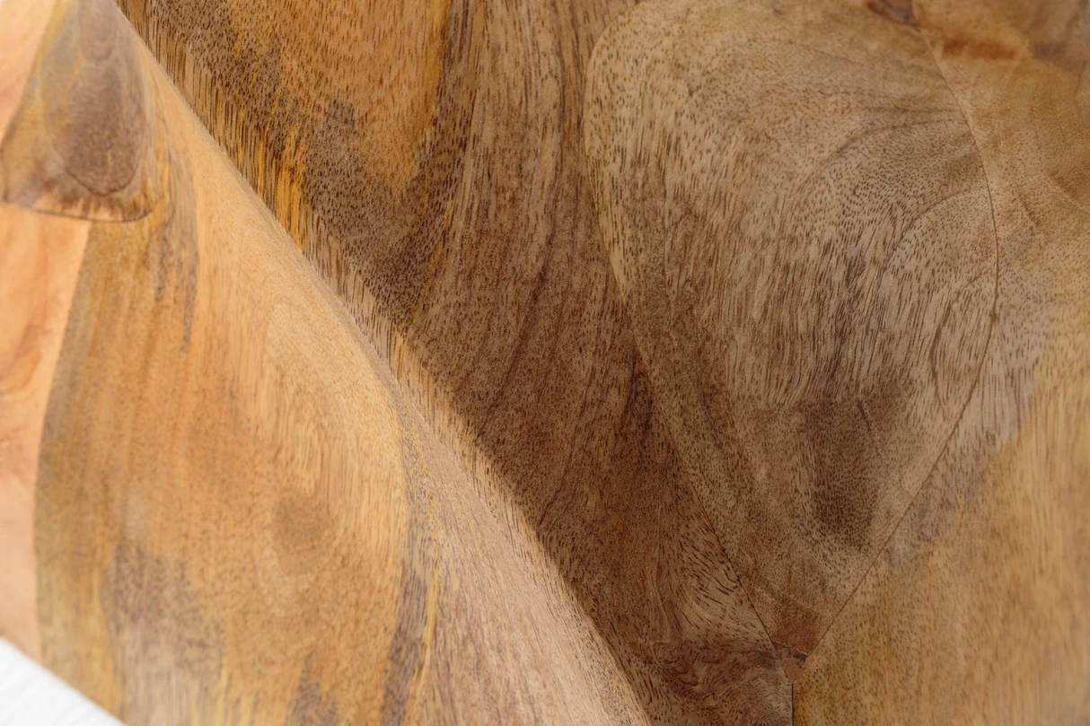 Tento odkladací stolík TWIST s výškou 45 cm je vyrezaný z masívneho mango dreva do originálneho skrúteného tvaru (twist). Jeho povrch má prirodzenú textúru s výraznými letokruhmi a neopracovanými detailmi, ktoré zdôrazňujú autentický charakter materiálu. Vďaka malým rozmerom sa skvelo hodí ako doplnkový stolík vedľa pohovky, ako pedál na dekorácie alebo do kúta interiéru, kde chceš pridať prírodný prvok bez veľkého zaťaženia priestoru.
