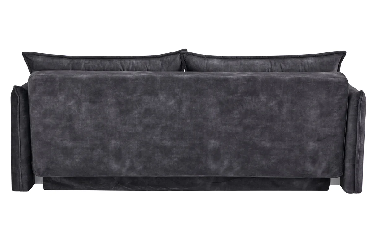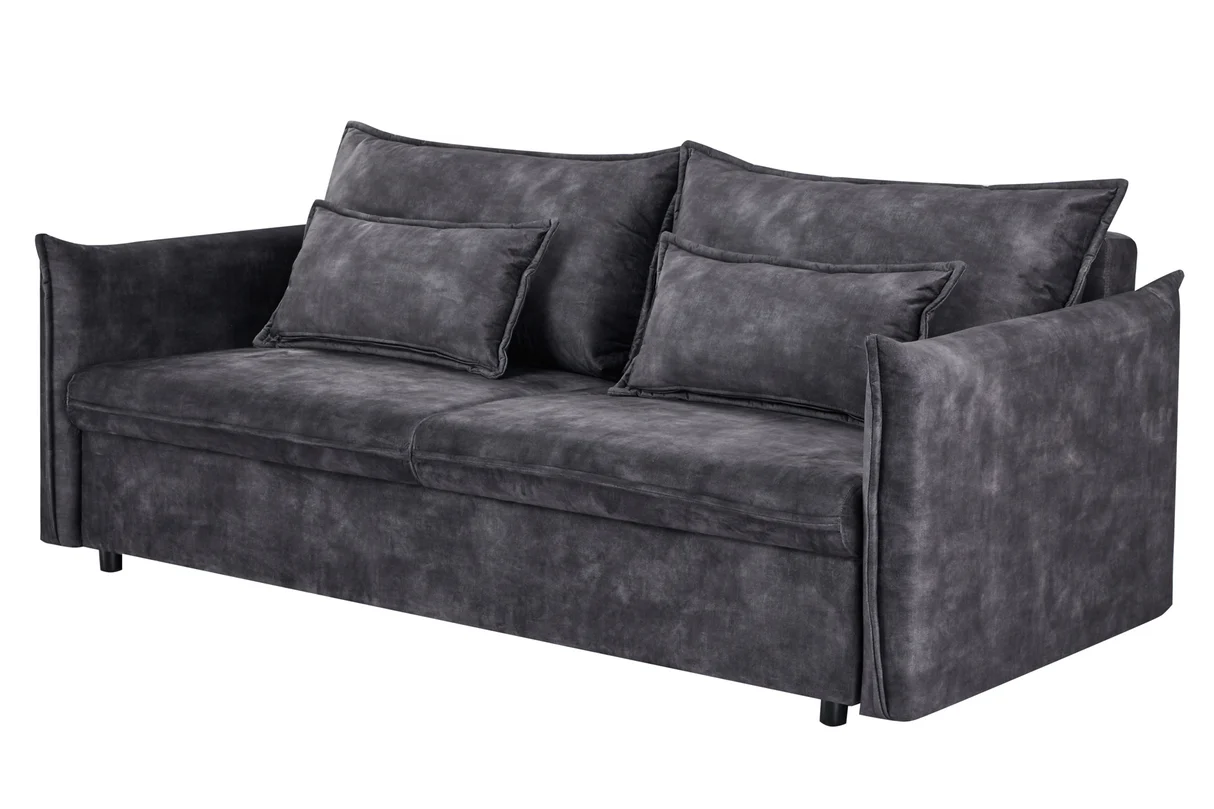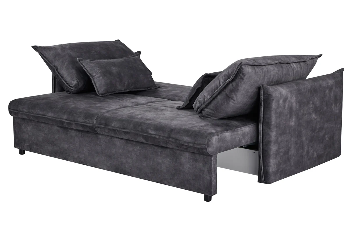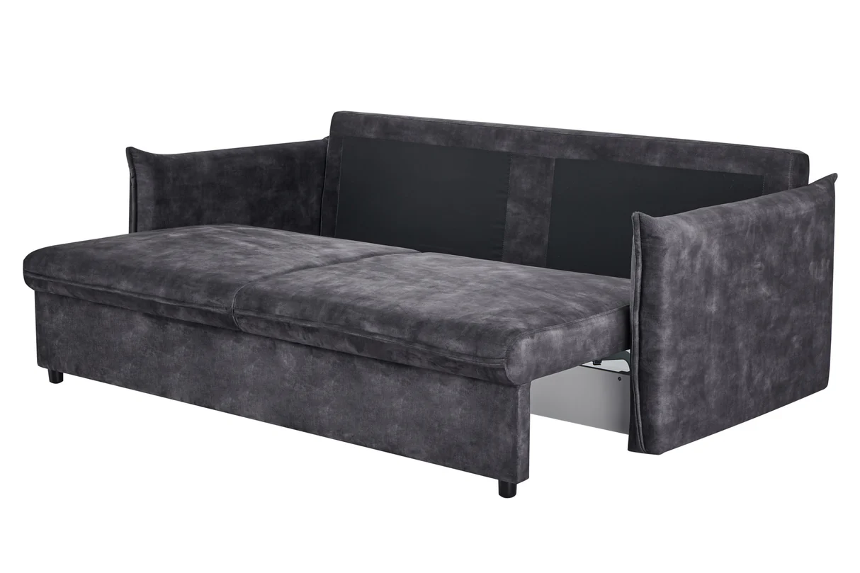 Táto pohovka APARTMENT kombinuje elegantný vzhľad s praktickosťou – velvetový poťah v sivej farbe pôsobí moderne a zároveň útulne. Model je navrhnutý ako trojmiestna sedačka, ktorá sa rozloží na posteľ, takže je skvelým riešením pre hostí alebo keď potrebuješ viac úložného priestoru. Za sedadlom sa nachádza skrytá polica, čo z nej robí multifunkčný kus nábytku vhodný do mestských bytov či moderných interiérov, kde sa každá funkcia ráta.