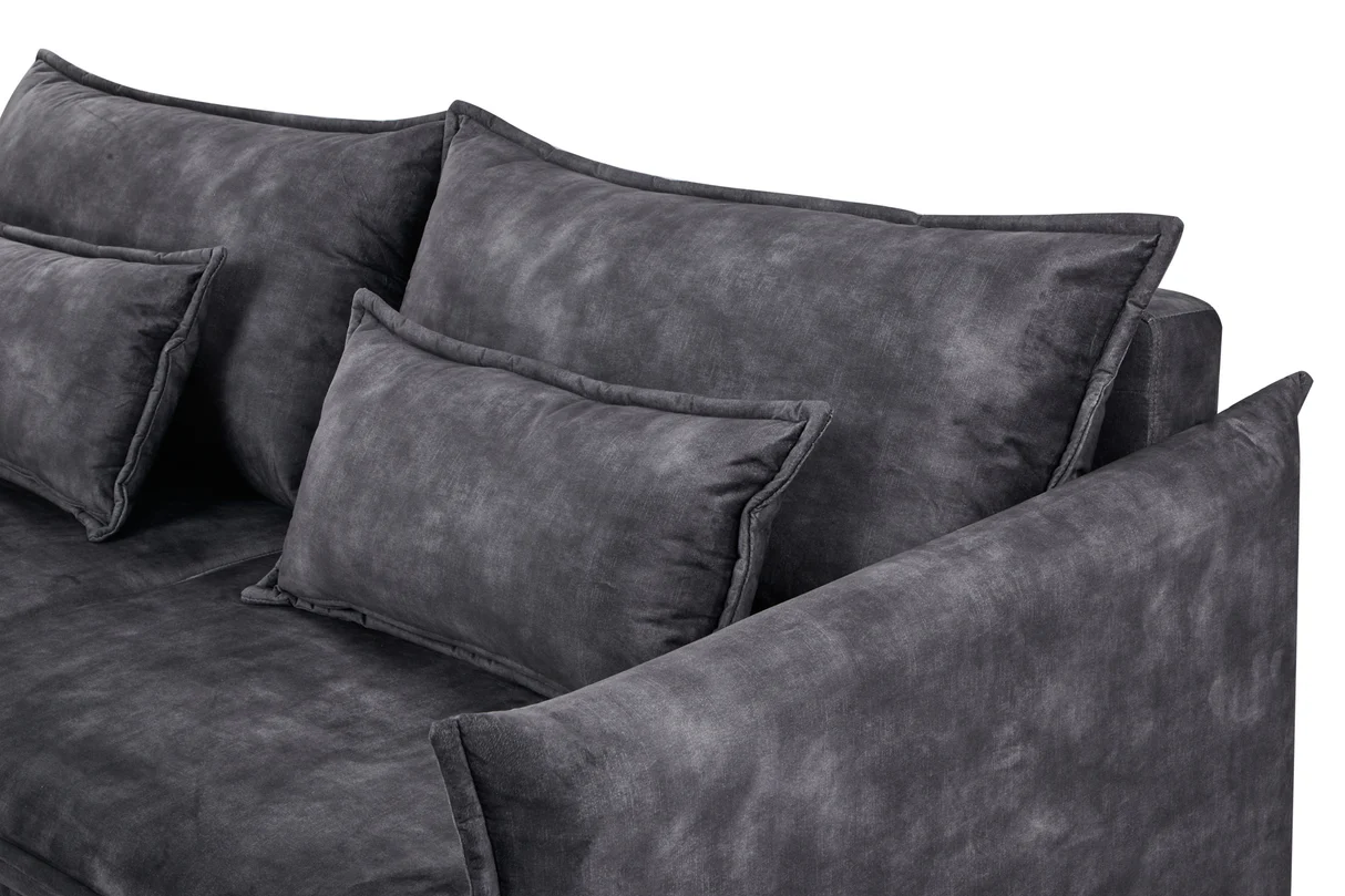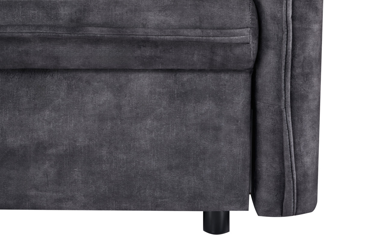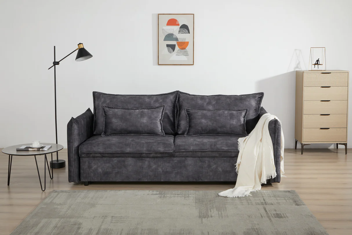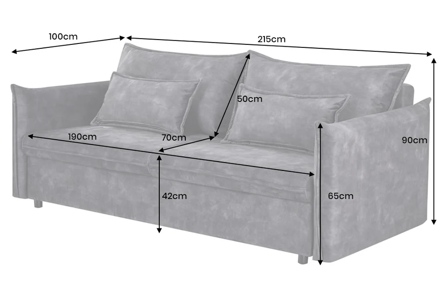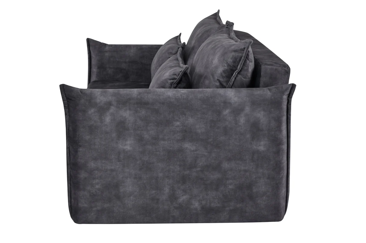 Táto pohovka APARTMENT kombinuje elegantný vzhľad s praktickosťou – velvetový poťah v sivej farbe pôsobí moderne a zároveň útulne. Model je navrhnutý ako trojmiestna sedačka, ktorá sa rozloží na posteľ, takže je skvelým riešením pre hostí alebo keď potrebuješ viac úložného priestoru. Za sedadlom sa nachádza skrytá polica, čo z nej robí multifunkčný kus nábytku vhodný do mestských bytov či moderných interiérov, kde sa každá funkcia ráta.