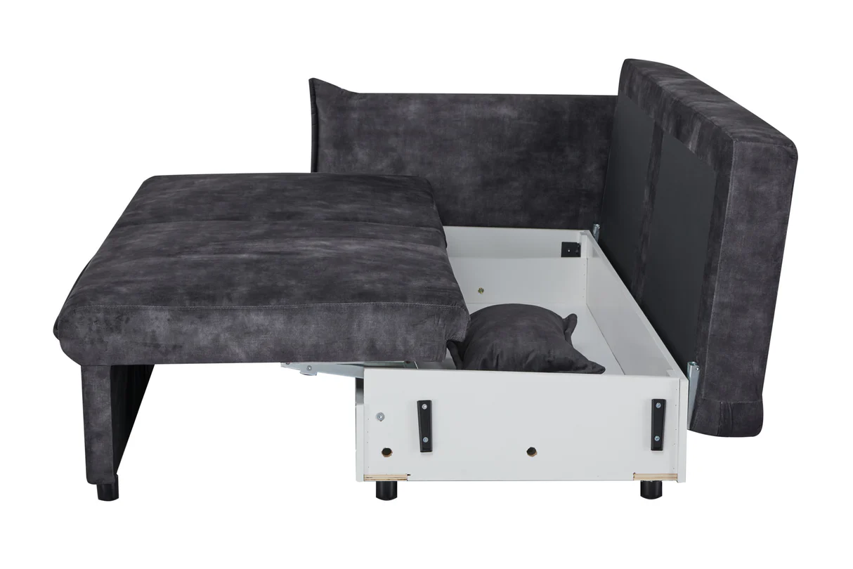 Multifunkčné riešenie do malých priestorov – sedacia časť + posteľ (rozkladací) plus skrytý úložný priestor – šetrí miesto a pridáva hodnotu.
