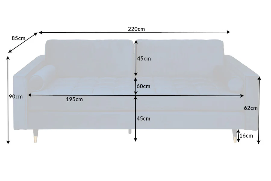 Rozmery: šírka 220 cm, výška 90 cm, hĺbka 85 cm